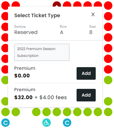 Red indicates “Premium” seating. Green indicates “Standard” seating.
