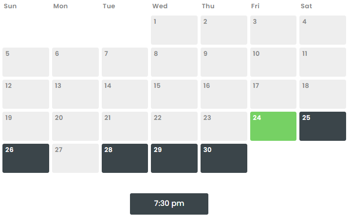 You will see the calendar with your selected date highlighted in green.